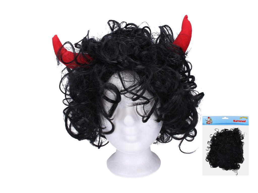 Originální černá paruka je dekorována čertími červenými růžky. Bude skvělým doplňkem na tématický večírek nebo karneval!Doplňkové parametry