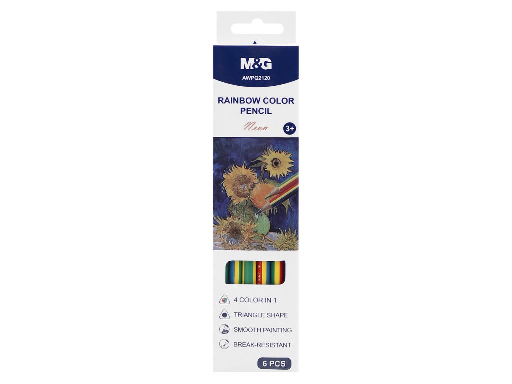 Pastelka vícebarevná M&G Rainbow - Neon, 4 barvy v 1 (balení 6ks)