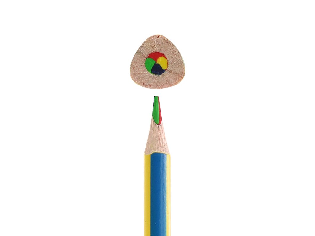 Multibarevná pastelka obsahuje barvy: zelenou, modrou, žlutou a červenou.