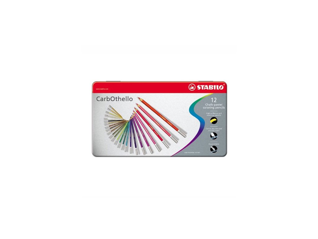 STABILO CarbOthello 12 ks kovové balení. Vytvořte krásné kresby s těmito křídovými pastelovými tužkami. Jsou ideální pro studenty umění, umělců a kreativních lidí všech věkových kategorií, kteří rádi vytvářejí úžasně barevné a krásné umělecká díla. Tato úžasná kolekce pastelových kříd v dřevěné tužce STABILO CarbOthello nabízí 60 krásných barevných odstínů. Pro různé efekty mohou být míchány, roztírané prsty či tortillonom, částečně jsou i rozmývateľné.Doplňkové parametry