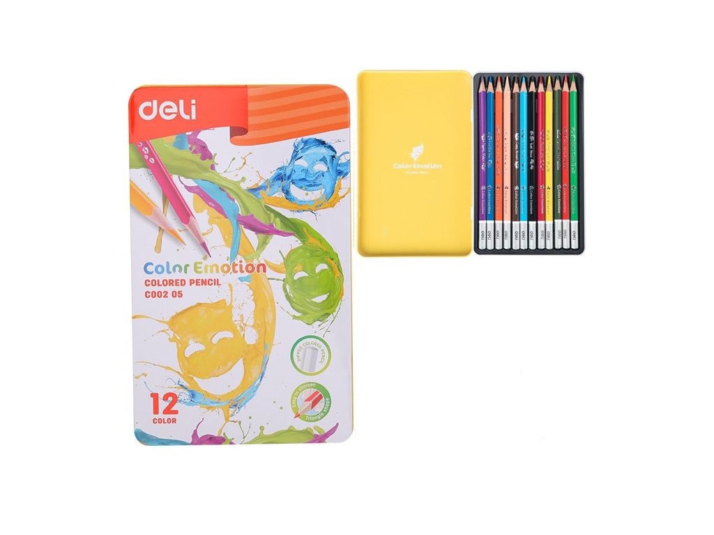 Popis zboží - trojhranné pastelky DELI Color Emotion v kovovém pouzdře, které mají krásné syté barvy - trojhranný tvar usnadní vašim dětem úchop pastelek v ruce při kreslení - 12 ks různých barev - zalakovaný konecDoplňkové parametry