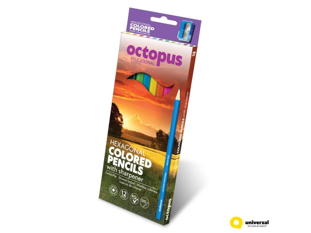 Kreativci a umělecké duše jsou spokojeni, protože nabízíme šestihranné dřevěné pastelky Octopus. Kreslení a vybarvování je opravdová zábava, protože pastelky jsou vyrobeny z kvalitního dřeva a měkkého grafitu. Délka dřevěné pastelky je 175 mm, průměr pastelky je 7 mm, průměr srdíčka je 3 mm. Balení obsahuje 12 ks pastelek.Doplňkové parametry