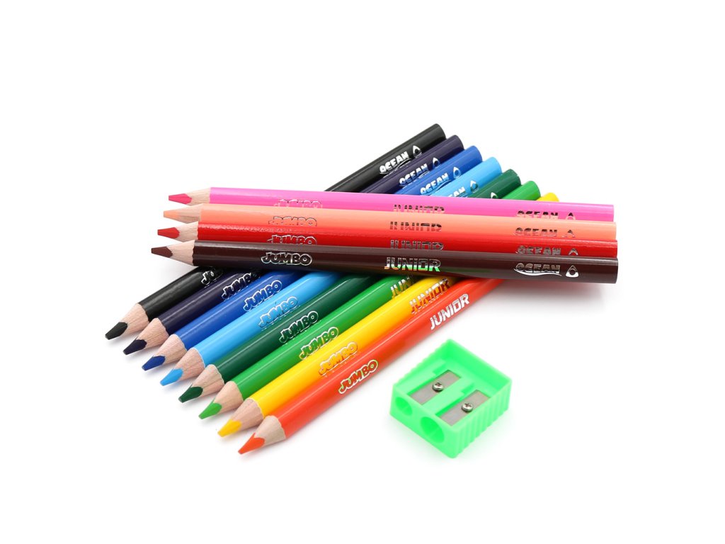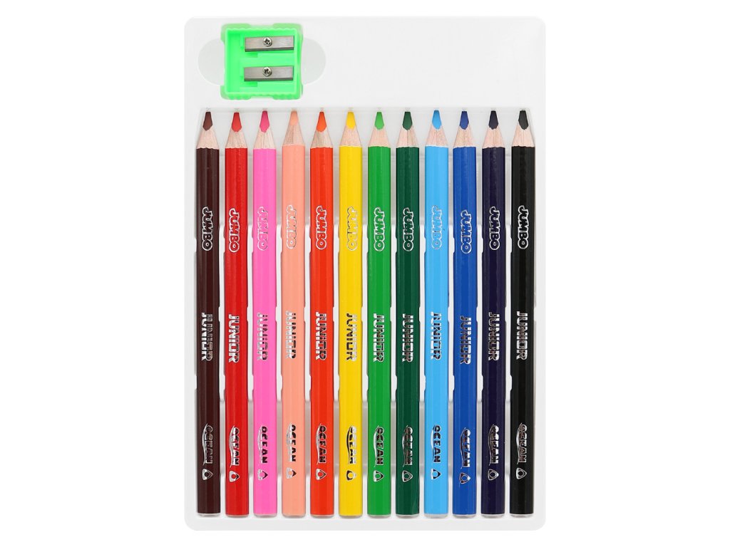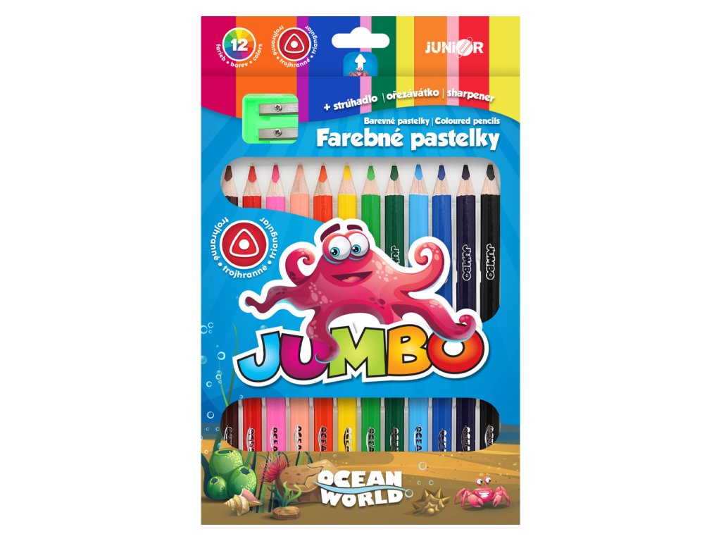 Pastelky JUNIOR Ocean World JUMBO trojhranné - sada 12 ks + ořezávátko