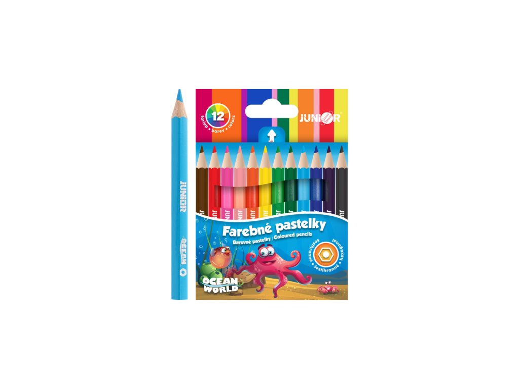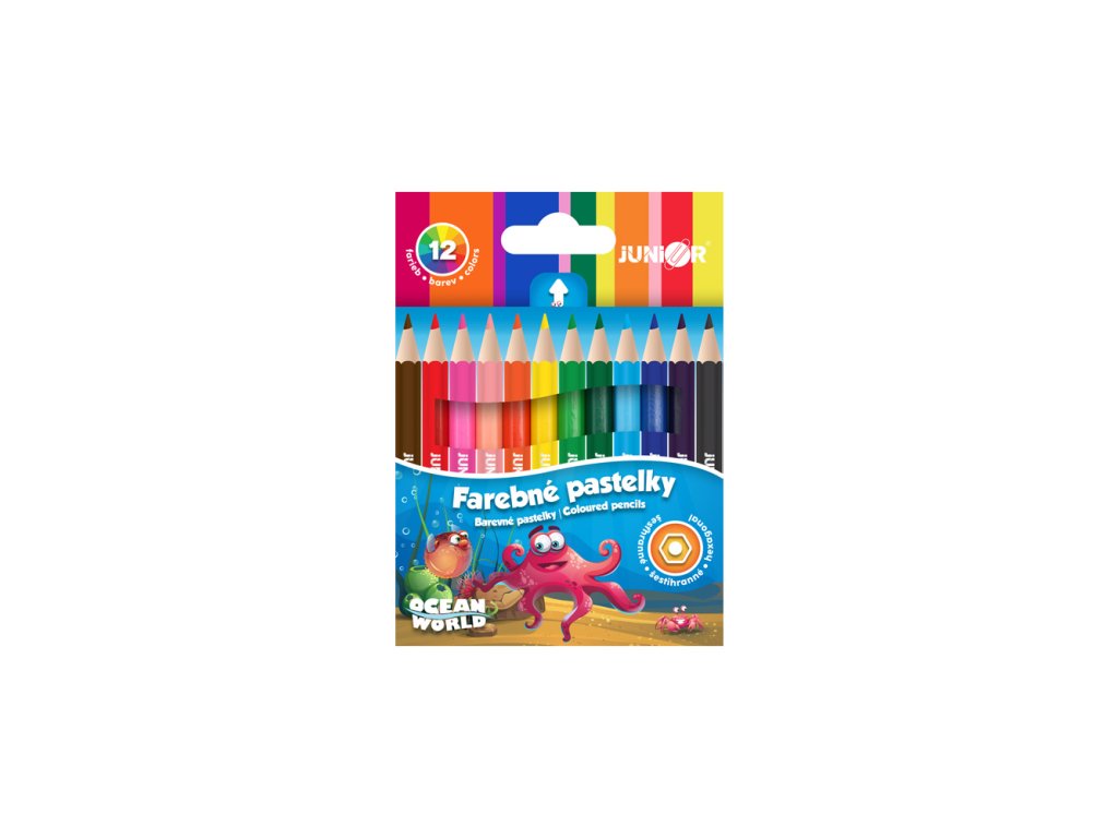 Pastelky JUNIOR Ocean World MINI šestihranné - sada 12 ks