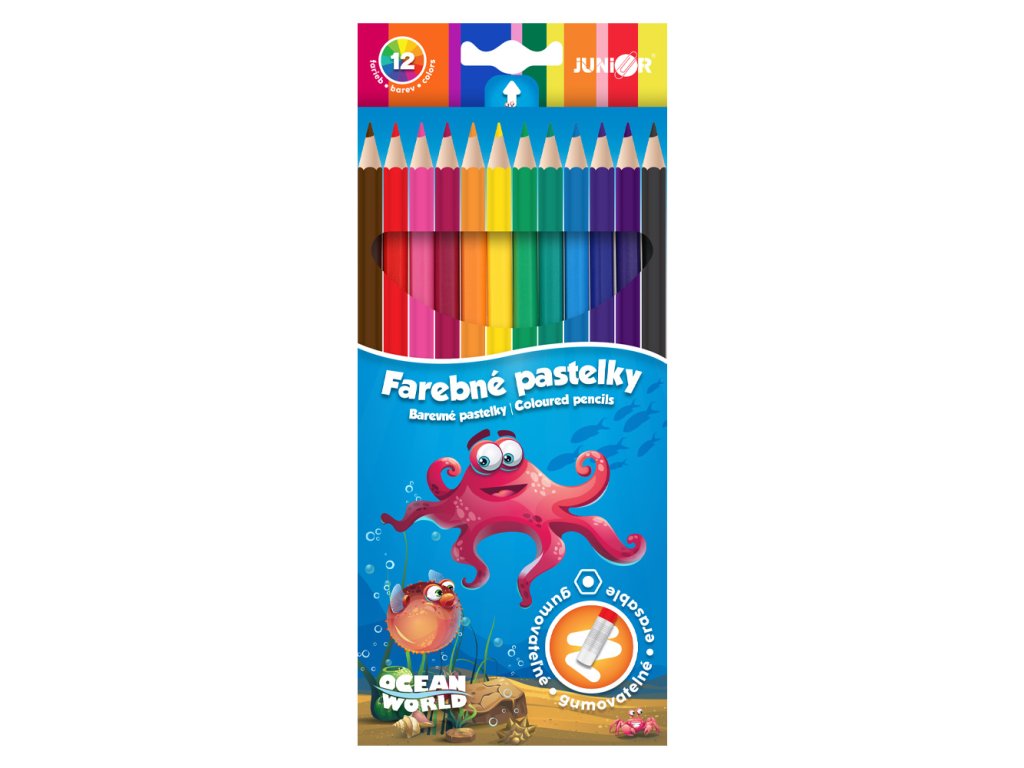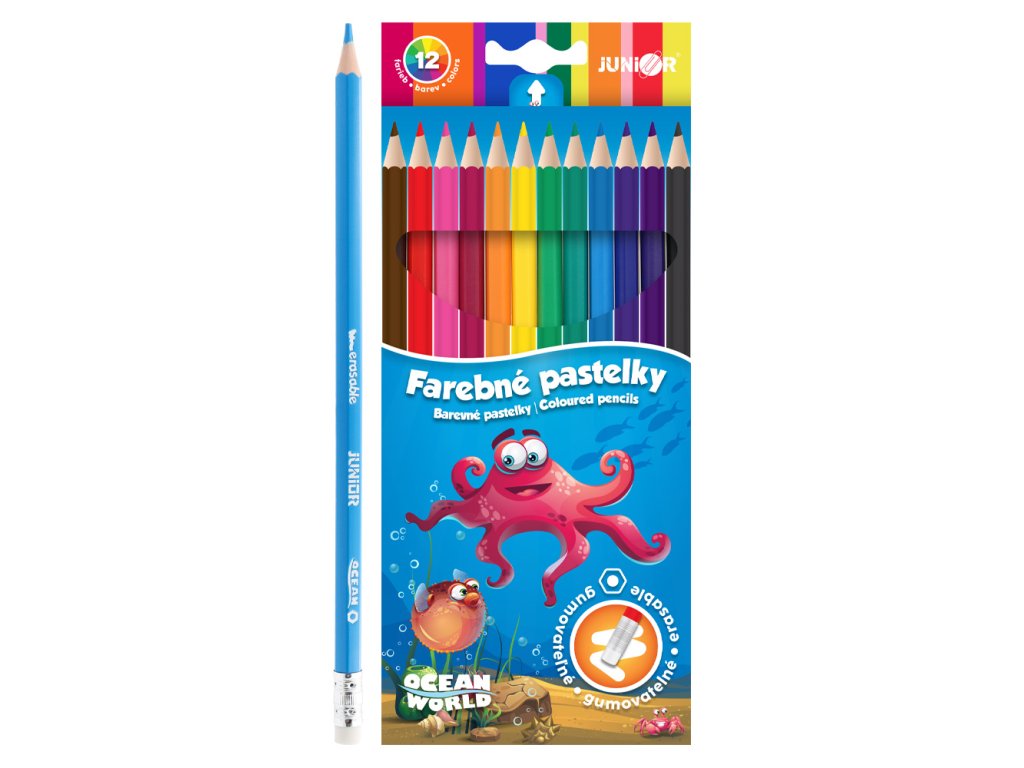 Pastelky JUNIOR Ocean World šestihranné/gumovatelné - sada 12 ks