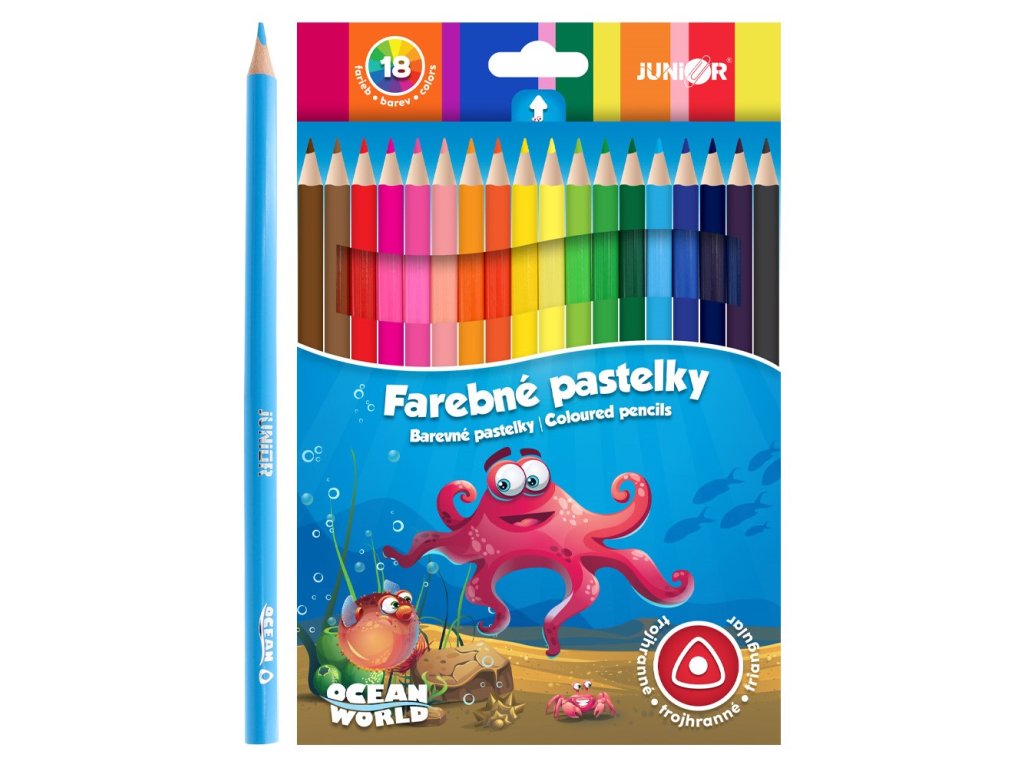 Pastelky JUNIOR Ocean World trojhrané - sada 18 ks