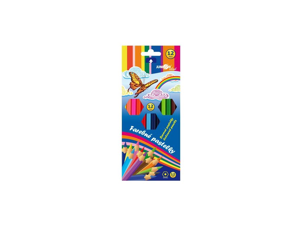 Dřevěné barevné tužky v šestihranném designu. Sada 12 tužek sytých barev v papírové krabičce. Rozměr balení: 9x20, 5 cm.Doplňkové parametry