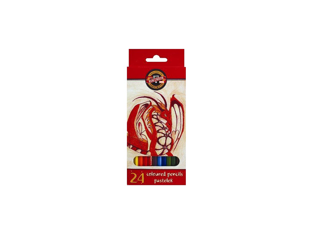 24-kusová sada školních pastelek s dobrou krycí schopností s dřevěným tělěm standardní kvality, dodávaná v papírovém boxu s eurpzávěsem.Doplňkové parametry