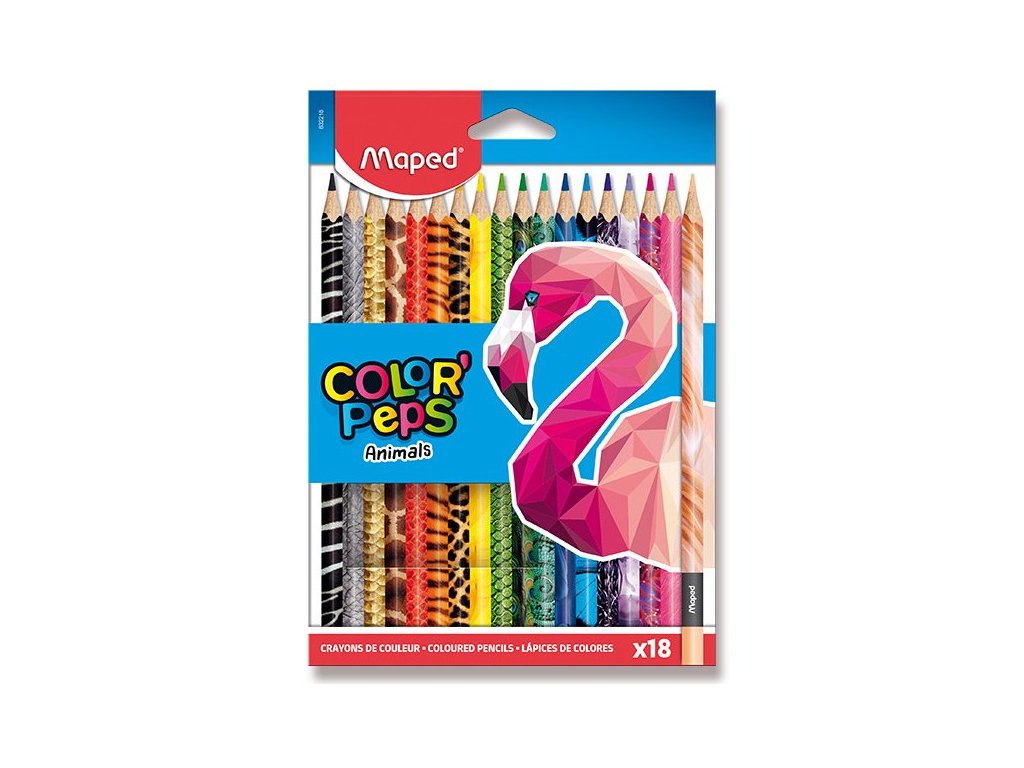 Souprava 18 kusů pastelek se zvířecími motivy v pouzdře. Ergonomické pastelky Maped Color'Peps mají trojhranné tělo, měkkou odolnou tuhu a jasné barvy. Tloušťka tuhy 2,9 mm. Trojhranné tělo. Měkká, odolná tuha. Jasné barvy.Doplňkové parametry