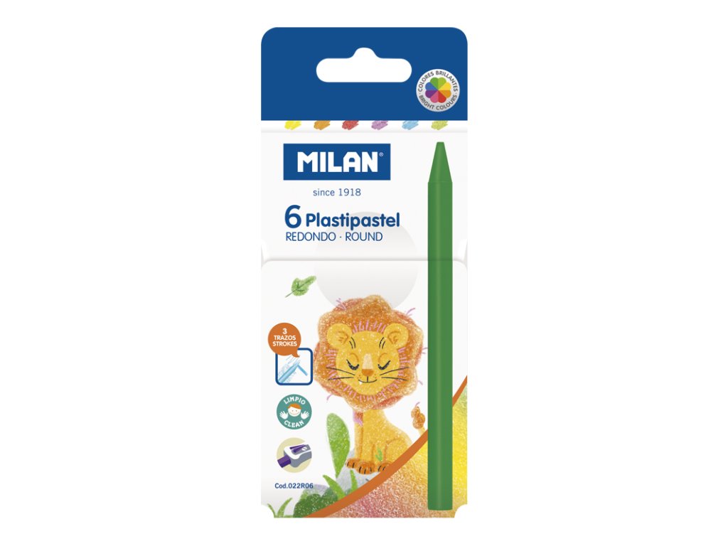 6 barevných tužek Plastipastel: žlutá, oranžová, červená, fialová, modrá a zelená. Kulatý tvar. . Tužky Plastipastel jsou barevné tužky, čisté a odolné, ideální pro malé děti. 3 různé tahy: jemné čáry se dají nakreslit špičkou tužky, tlusté čáry se dají nakreslit koncovou částí a větší plochy se dají vystínovat pomocí celé délky tužky.Doplňkové parametry