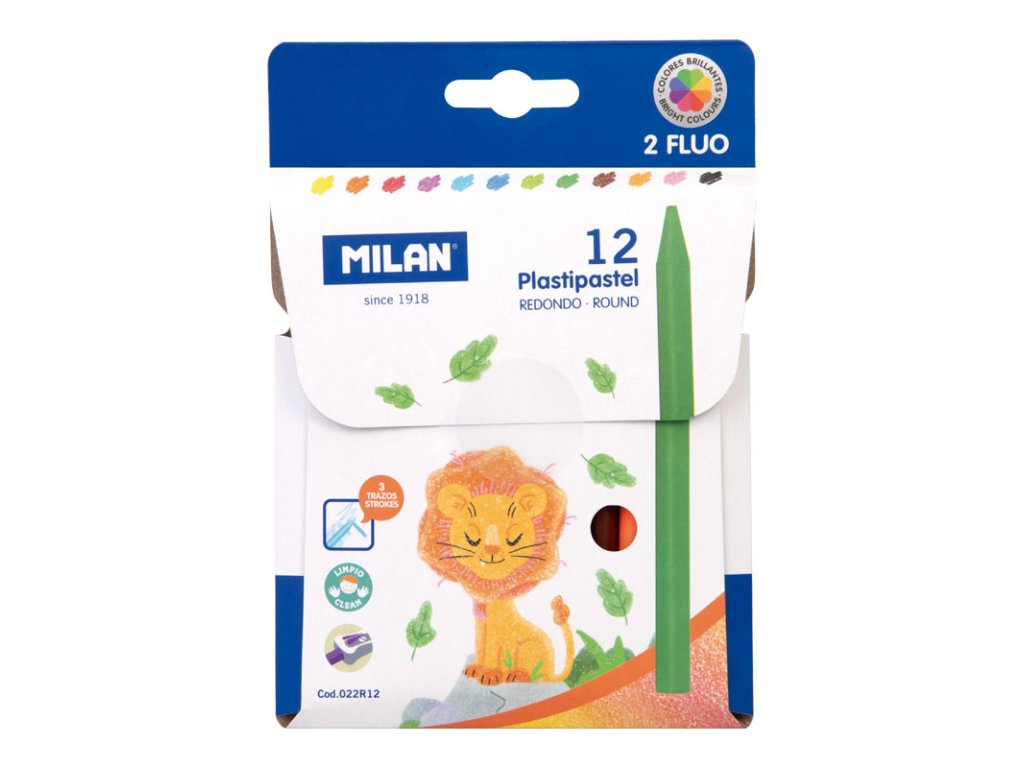 Pastelky MILAN jsou pestrobarevné plastické tužky, pevné, ideální pro malé děti. Kulatý design se zaoblenými rohy perfektně padne do rukou malých dětí. Jemné čáry mohou nakreslit pomocí špičky tužky, tlusté čáry mohou nakreslit pomocí koncové části a větší plochy se mohou lemovat po celé délce tužky. Sada obsahuje 10 ks základních barev + 2 ks fluo barev.Doplňkové parametry