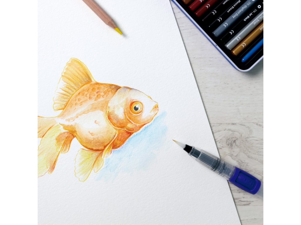 Štětec s 8 ml kelímkem na vodu - průměr štětců 4 mm. Regulace průtoku vody štětcem pomocí tlačítka. 5 barevných akvarelových tužek s velkou tuhou průměru 3,5 mm.Doplňkové parametry