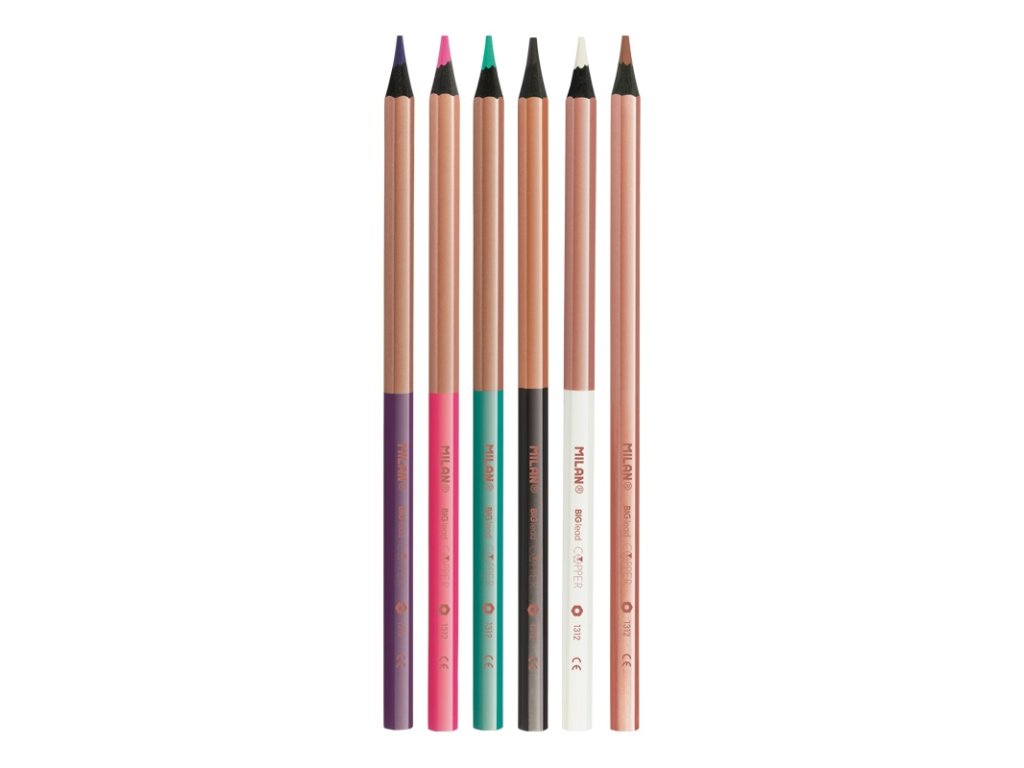 Šestihranné barevné pastelky se silnou tuhou 3,5 mm. Edice Copper - měděný designový povrch v kombinaci s výraznými barvami. Pastelky s ochranným systémem LPS (lead protection system), který zvyšuje odolnost proti lámání. Dřevo pochází z udržitelných lesů. V 6 barvách: měděná, bílá, černá, zelená, růžová a fialová. Jsou skvělé na kreslení na tmavý papír.Doplňkové parametry