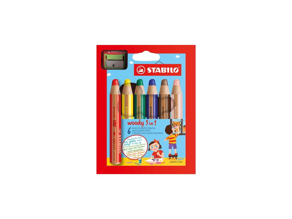 Woody 3 v 1 je barvička, vodovka a voskovka v jednom, která umí kreslit na papír, na tmavý podklad, karton, sklo, kov, dřevo nebo třeba i na gumáky. Sada 6 ks + ořezávátko. Ozdobit si dřevěný rámeček, okno, chlebník nebo plechovku na tužky je hračka. Děti ji milují a rodiče mohou zůstat v klidu, protože barvu lze z ručiček iz hladkého povrchu dobře smýt vodou s mýdlem nebo saponátem. Tuha obsahuje osmkrát více barvy než běžná barvička, nelze ji zlomit a hodí se na extra dlouhé kreslení.Doplňkové parametry