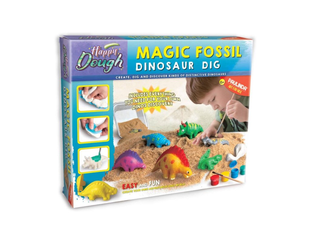 Sada k výrobě dinosauřích odlitků obsahuje: hmotu Happy Dough písek 300 g plastové formičky k výrobě dinosaurů krabičku na odlitky barvičky štětec návod Sada je vhodná pro děti od 6 let.Doplňkové parametry