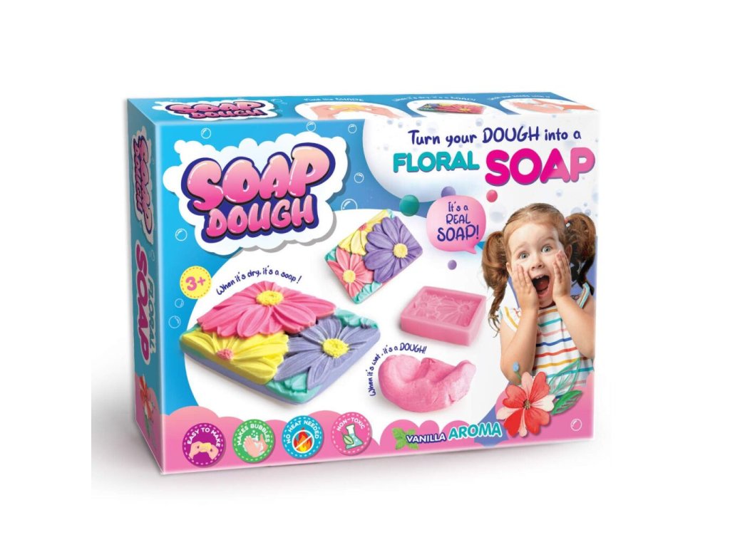 Sada pro výrobu mýdla s motivem květin. Obsah balení - 4x30g mýdlové hmoty, síťové pytlíčky, formičky, návod. Hotové mýdlo můžete vložit do síťovaných pytlíčků, aby při mytí více pěnilo. Obrázkový návod součástí balení.Doplňkové parametry