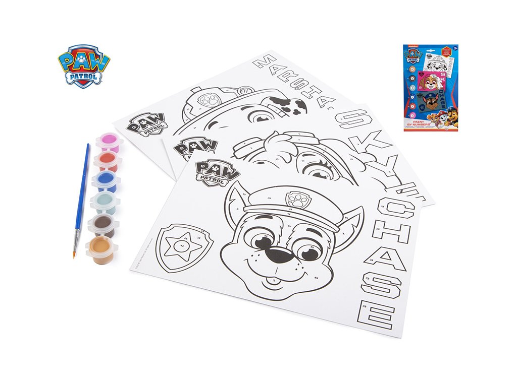 Paw Patrol sada obrázků malování podle čísel v papírové kartě