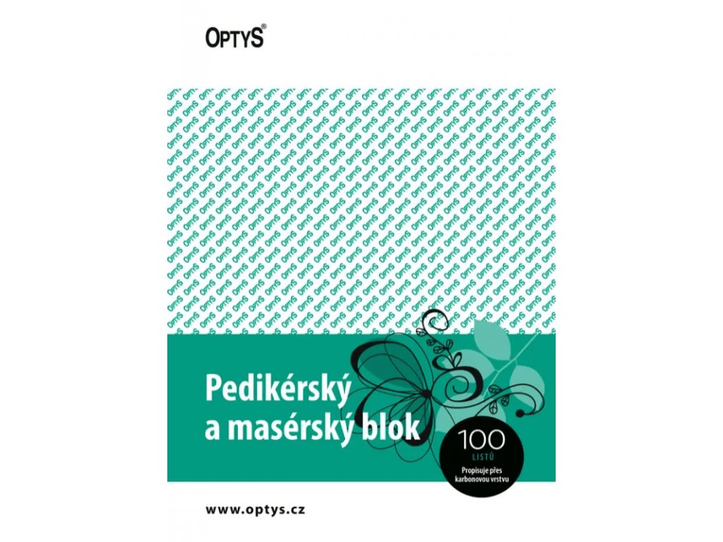 Blok pro maséry a pedikérská studia s karbonovou (propisovací) vrstvou. 100 listů, každý list má dvě části. Formát A5. Nečíslovaný.Doplňkové parametry