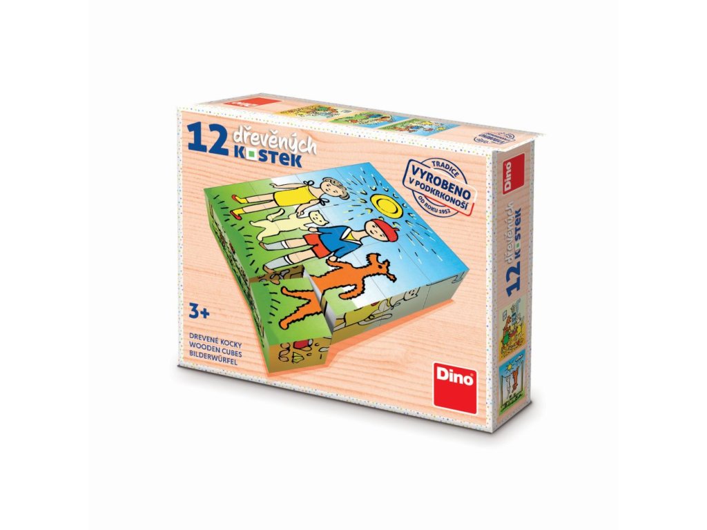 Dětské dřevěné kostičky, ze kterých lze sestavit 6 různých obrázků. Balení obsahuje 12 kostiček. Věk: 3+Doplňkové parametry