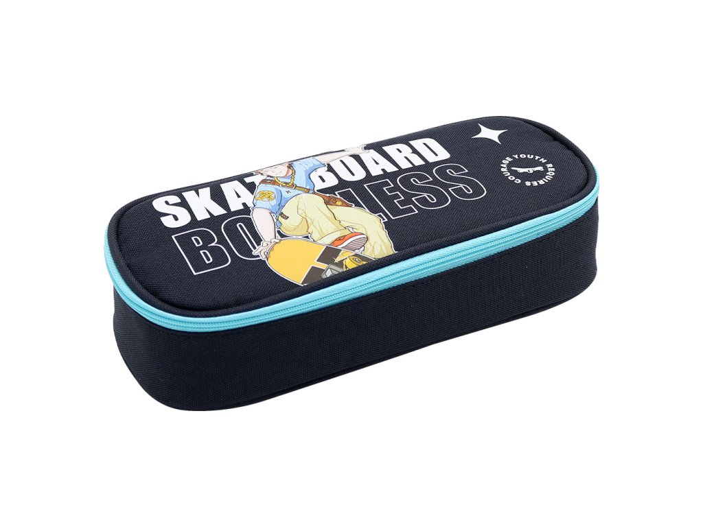 1-zipový penál s textilním pláštěm spolehlivě uschová všechny psací potřeby (3 designy Skateboard).