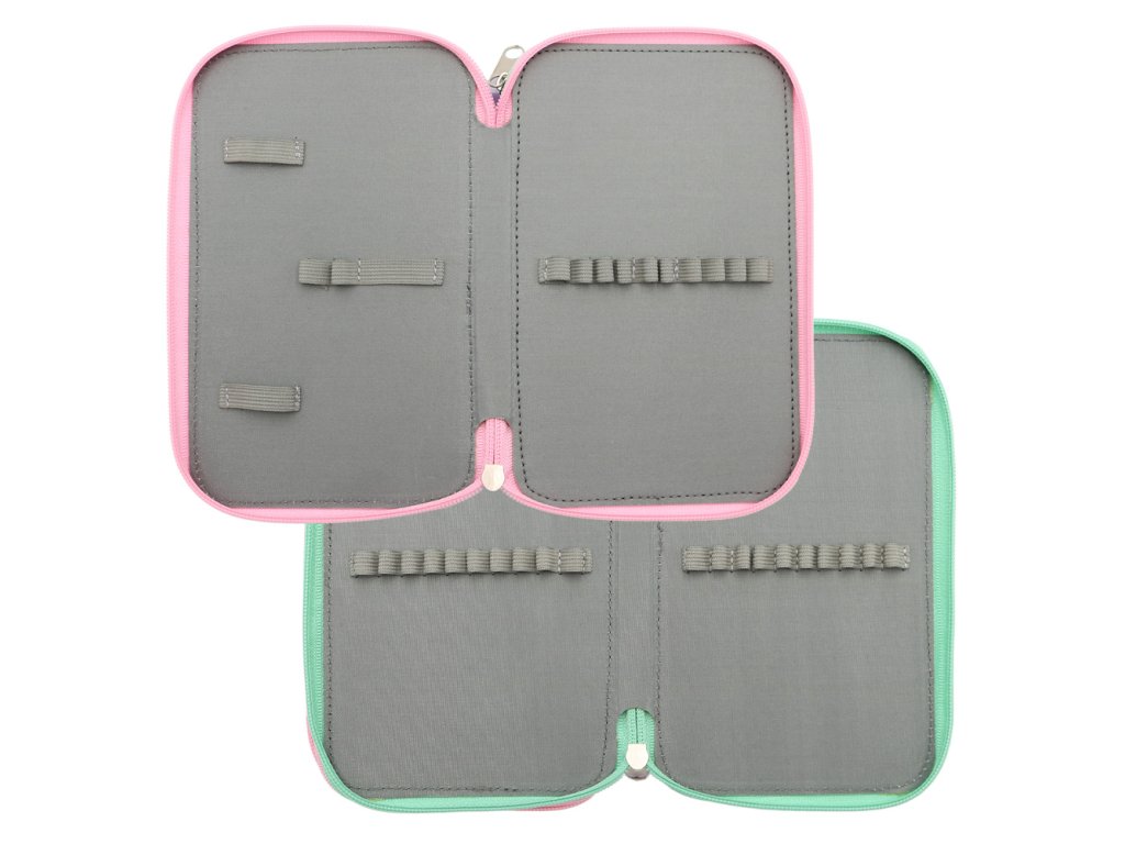 Dvoupatrový školní penál, prošívané pevné desky zajistí delší životnost.