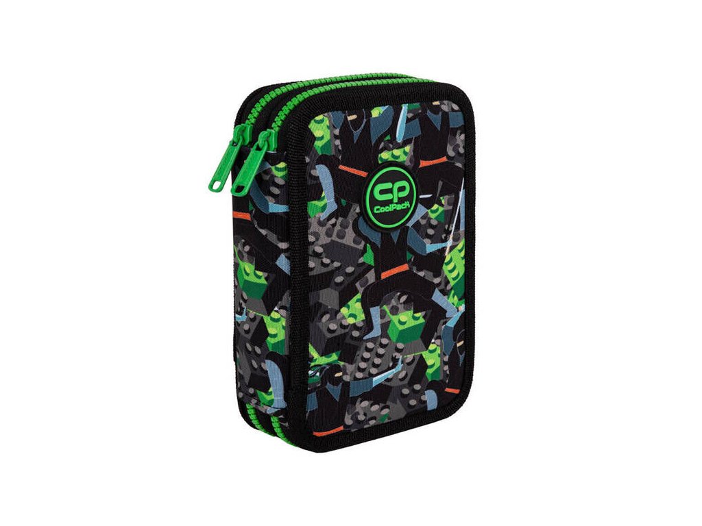 Vybavený 2 zipý školní penál CoolPack Jumper 2 Obsahuje: • trojhranné pastelky Colorino 12 ks • barevné fixy Colorino 18 ks • trojhranná tužka HB Colorino 1 ks • kuličkové pero Patio Base 1 ks • pravítko 15 cm • pryž Colorino • ořezávátkoDoplňkové parametry