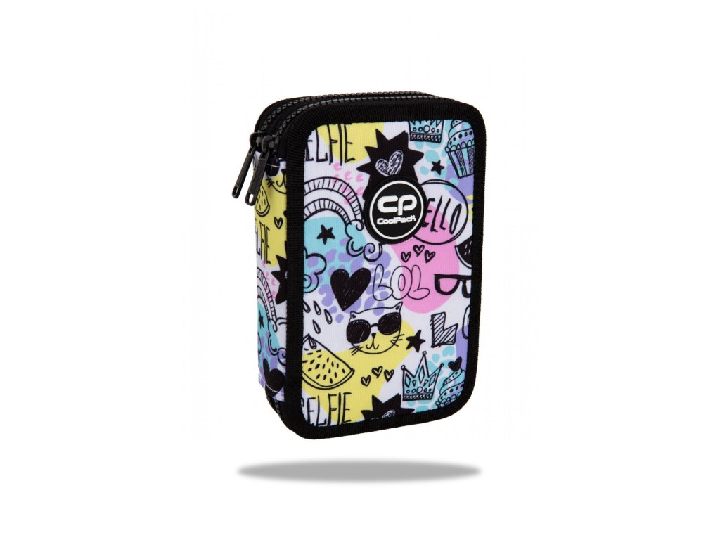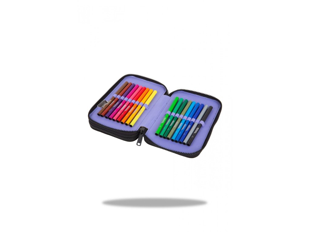 Vybavený 2 zipý školní penál CoolPack Jumper 2 Obsahuje: • trojhranné pastelky Colorino 12 ks • barevné fixy Colorino 18 ks • trojhranná tužka HB Colorino 1 ks • kuličkové pero Patio Base 1 ks • pravítko 15 cm • pryž Colorino • ořezávátkoDoplňkové parametry