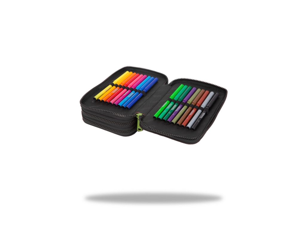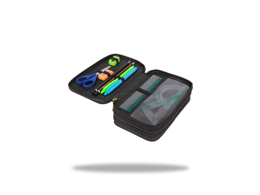 Vybavený 3 zipý školní penál CoolPack Jumper 3 Obsahuje: • trojhranné pastelky Colorino 18 ks • barevné fixy Colorino 18 ks • trojhranná tužka HB Colorino 1 ks • trojhranná tužka 2B Colorino 1 ks • trojhranné gelové pero Colorino 2 ks • pravítko 15 cm • trojúhelník 10 cm • úhloměr 10 cm • nůžky 11 cm • pryž Colorino • ořezávátkoDoplňkové parametry