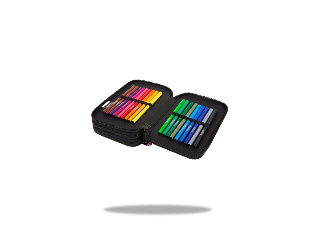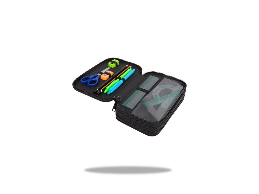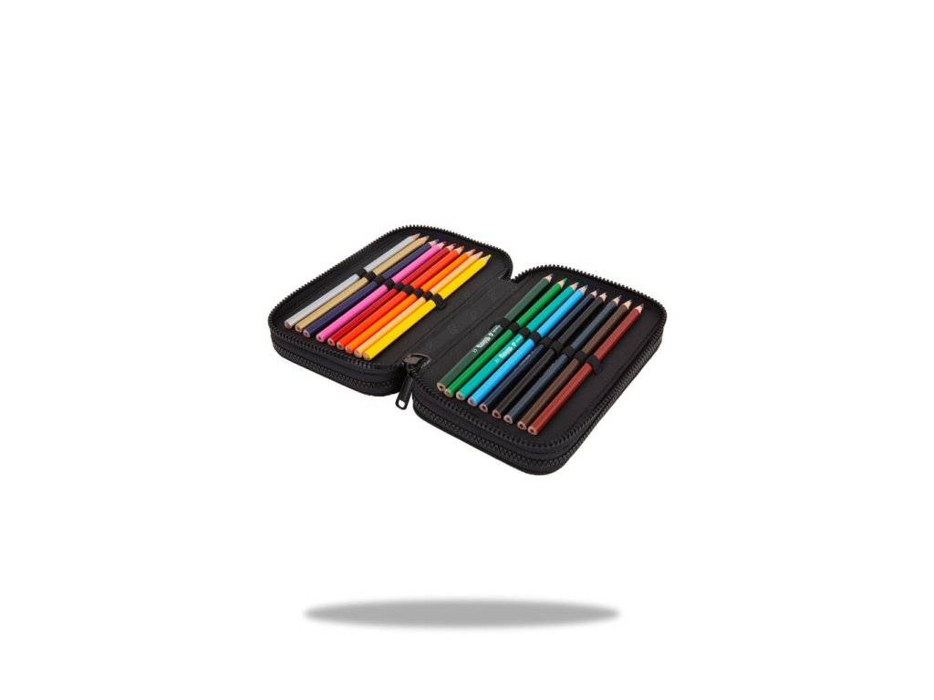 Vybavený 3 zipý školní penál CoolPack Jumper 3 Obsahuje: • trojhranné pastelky Colorino 18 ks • barevné fixy Colorino 18 ks • trojhranná tužka HB Colorino 1 ks • trojhranná tužka 2B Colorino 1 ks • trojhranné gelové pero Colorino 2 ks • pravítko 15 cm • trojúhelník 10 cm • úhloměr 10 cm • nůžky 11 cm • pryž Colorino • ořezávátkoDoplňkové parametry