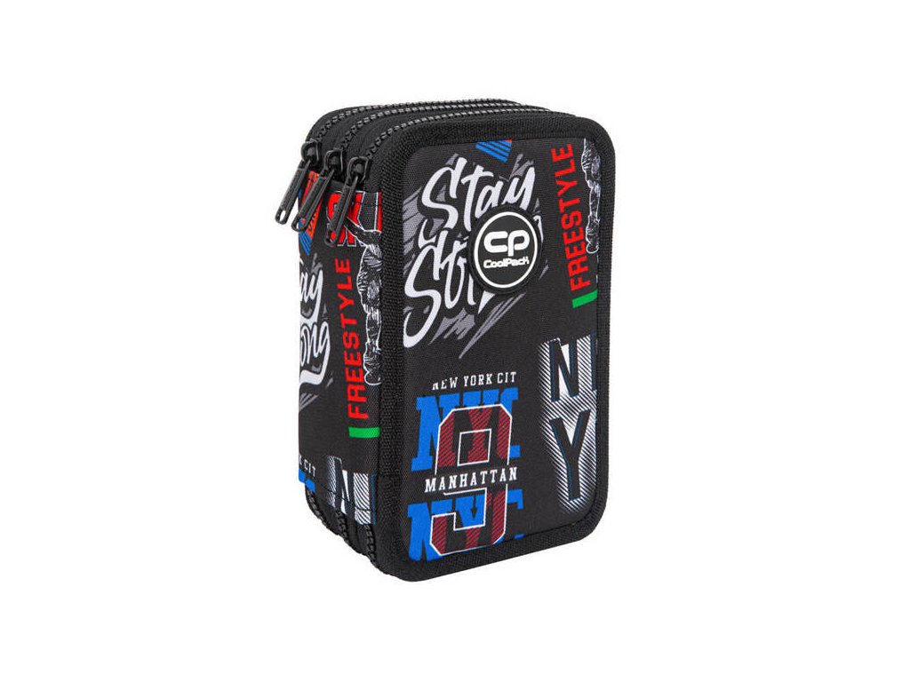 Vybavený 3 zipý školní penál CoolPack Jumper 3 Obsahuje: • trojhranné pastelky Colorino 18 ks • barevné fixy Colorino 18 ks • trojhranná tužka HB Colorino 1 ks • trojhranná tužka 2B Colorino 1 ks • trojhranné gelové pero Colorino 2 ks • pravítko 15 cm • trojúhelník 10 cm • úhloměr 10 cm • nůžky 11 cm • pryž Colorino • ořezávátkoDoplňkové parametry