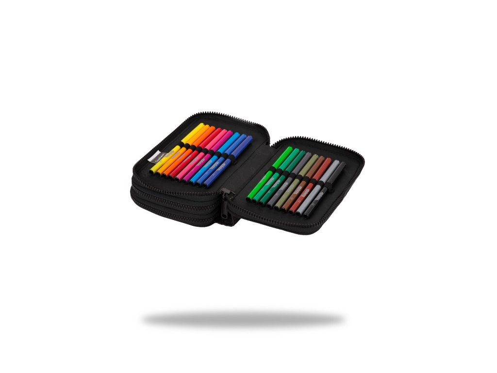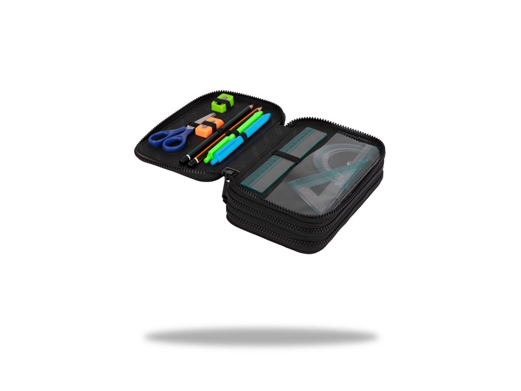 Vybavený 3 zipý školní penál CoolPack Jumper 3 Obsahuje: • trojhranné pastelky Colorino 18 ks • barevné fixy Colorino 18 ks • trojhranná tužka HB Colorino 1 ks • trojhranná tužka 2B Colorino 1 ks • trojhranné gelové pero Colorino 2 ks • pravítko 15 cm • trojúhelník 10 cm • úhloměr 10 cm • nůžky 11 cm • pryž Colorino • ořezávátkoDoplňkové parametry