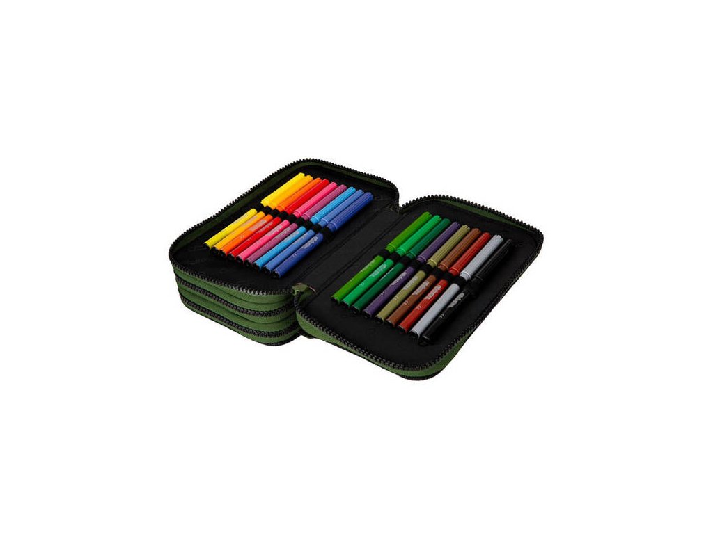 Vybavený 3 zipý školní penál CoolPack Jumper 3 Obsahuje: • trojhranné pastelky Colorino 18 ks • barevné fixy Colorino 18 ks • trojhranná tužka HB Colorino 1 ks • trojhranná tužka 2B Colorino 1 ks • trojhranné gelové pero Colorino 2 ks • pravítko 15 cm • trojúhelník 10 cm • úhloměr 10 cm • nůžky 11 cm • pryž Colorino • ořezávátkoDoplňkové parametry