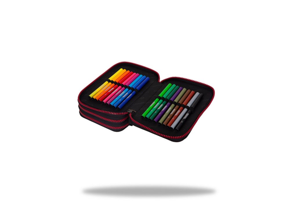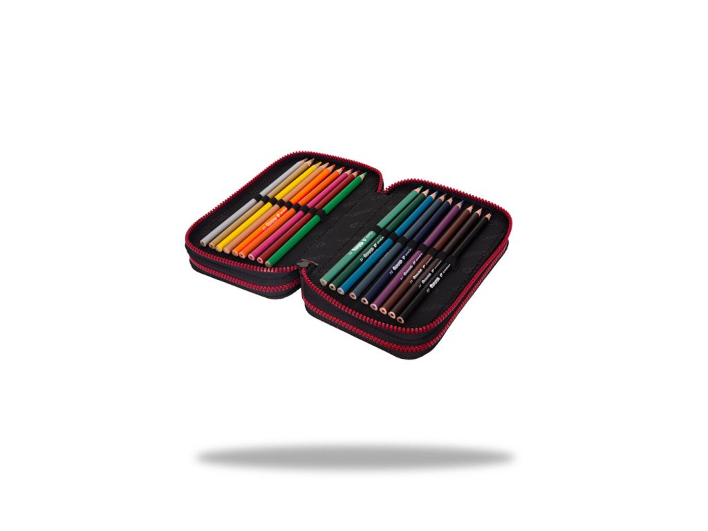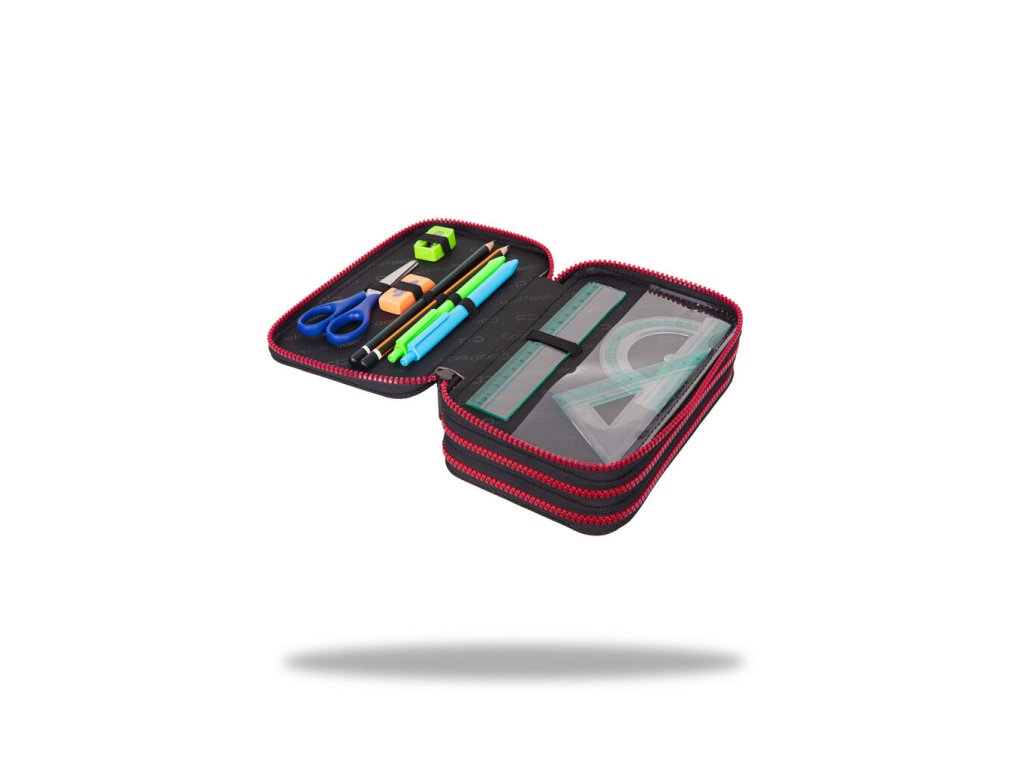 Vybavený 3 zipý školní penál CoolPack Jumper 3 Obsahuje: • trojhranné pastelky Colorino 18 ks • barevné fixy Colorino 18 ks • trojhranná tužka HB Colorino 1 ks • trojhranná tužka 2B Colorino 1 ks • trojhranné gelové pero Colorino 2 ks • pravítko 15 cm • trojúhelník 10 cm • úhloměr 10 cm • nůžky 11 cm • pryž Colorino • ořezávátkoDoplňkové parametry
