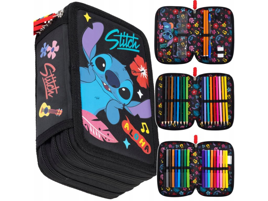 Penál 3 zipy Lilo a Stitch black Aloha - vybavený