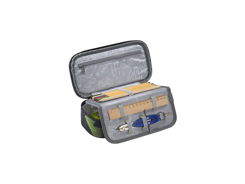 - peračník na perá, ceruzky, pravítka, uhlomer, gumu a ďalšie školské potreby - BEZ VYBAVENIA - vrecko na zips vo veku peračníka - gumičky na zasunutie 6 ceruziek alebo pasteliek - ďalších 7 väčších pútok pre príslušenstvo (napr. pravítko, kružidlo, gumu, malý trojuholník) - okienko na rozvrh hodín - vnútorné veko sa dá otvoriť a zavrieť suchým zipsom - zatváranie na zips - EKOLOGICKÝ VÝROBOK, LÁTKA JE VYROBENÁ Z RECYKLOVANÝCH PET FLIAŠ - vyrobené v súlade s trvale udržateľným rozvojom a so zásadami organizácie bluesign®, ktorých sme hrdým partnerom - vyrobené v prevádzke s dobrými sociálnymi a bezpečnostnými podmienkami pre zamestnanca, člen nadácie Fair Wear Technické parametre: - materiál: polyester - rozmery: v.6 x š.24 x h.11 cm - hmotnosť: 170 gDoplňkové parametry