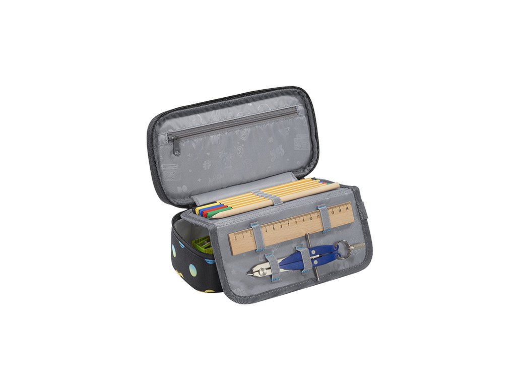 - peračník na perá, ceruzky, pravítka, uhlomer, gumu a ďalšie školské potreby - BEZ VYBAVENIA - vrecko na zips vo veku peračníka - gumičky na zasunutie 6 ceruziek alebo pasteliek - ďalších 7 väčších pútok pre príslušenstvo (napr. pravítko, kružidlo, gumu, malý trojuholník) - okienko na rozvrh hodín - vnútorné veko sa dá otvoriť a zavrieť suchým zipsom - zatváranie na zips - EKOLOGICKÝ VÝROBOK, LÁTKA JE VYROBENÁ Z RECYKLOVANÝCH PET FLIAŠ - vyrobené v súlade s trvale udržateľným rozvojom a so zásadami organizácie bluesign®, ktorých sme hrdým partnerom - vyrobené v prevádzke s dobrými sociálnymi a bezpečnostnými podmienkami pre zamestnanca, člen nadácie Fair Wear Technické parametre: - materiál: polyester - rozmery: v.6 x š.24 x h.11 cm - hmotnosť: 170 gDoplňkové parametry