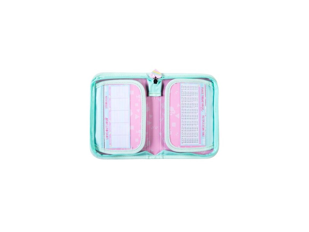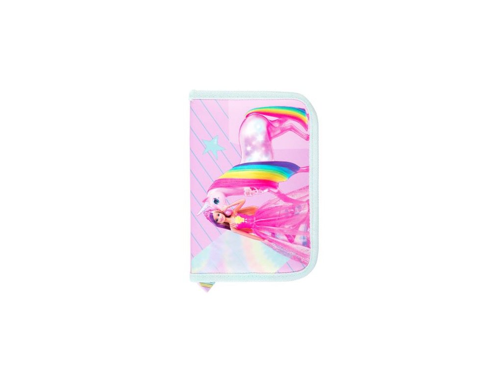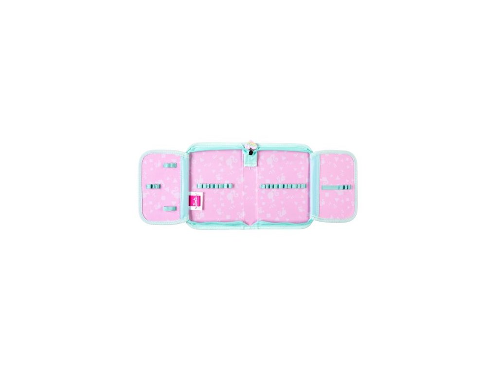 Školní penál jednopatrový se 2 chlopněmi s populárním motivem Barbie uzavírání na zip 27 pružných gumových poutek na psací a rýsovací potřeby 2 průhledné přihrádky na rozvrh Rozměry: 210 x 135 x 35 mm Obchodní informace: Výrobce: St.Majewski Dovozce: Reas-Pack s.r.o.Doplňkové parametry