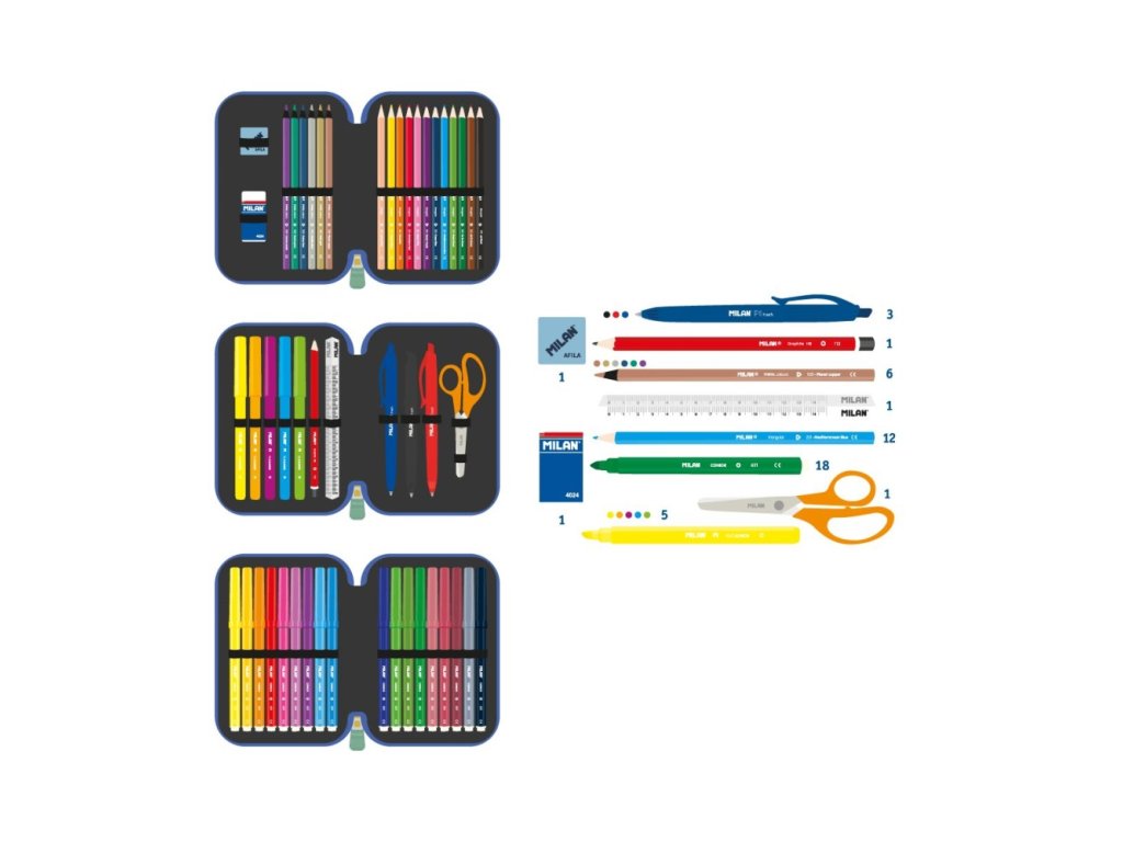 Penál MILAN 3-patrový/plný, Blue Odyssey special series