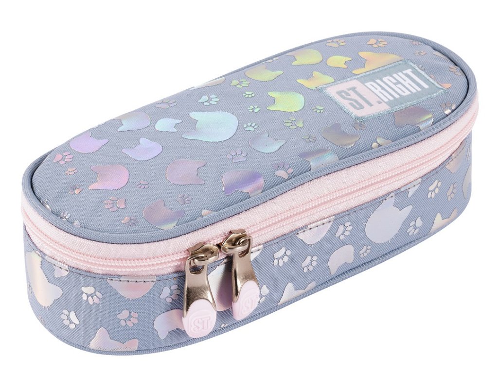 Penál oválný St.RIGHT - Silver Cats, PC-01, rozměry 23 x 9,5 x 6 cm