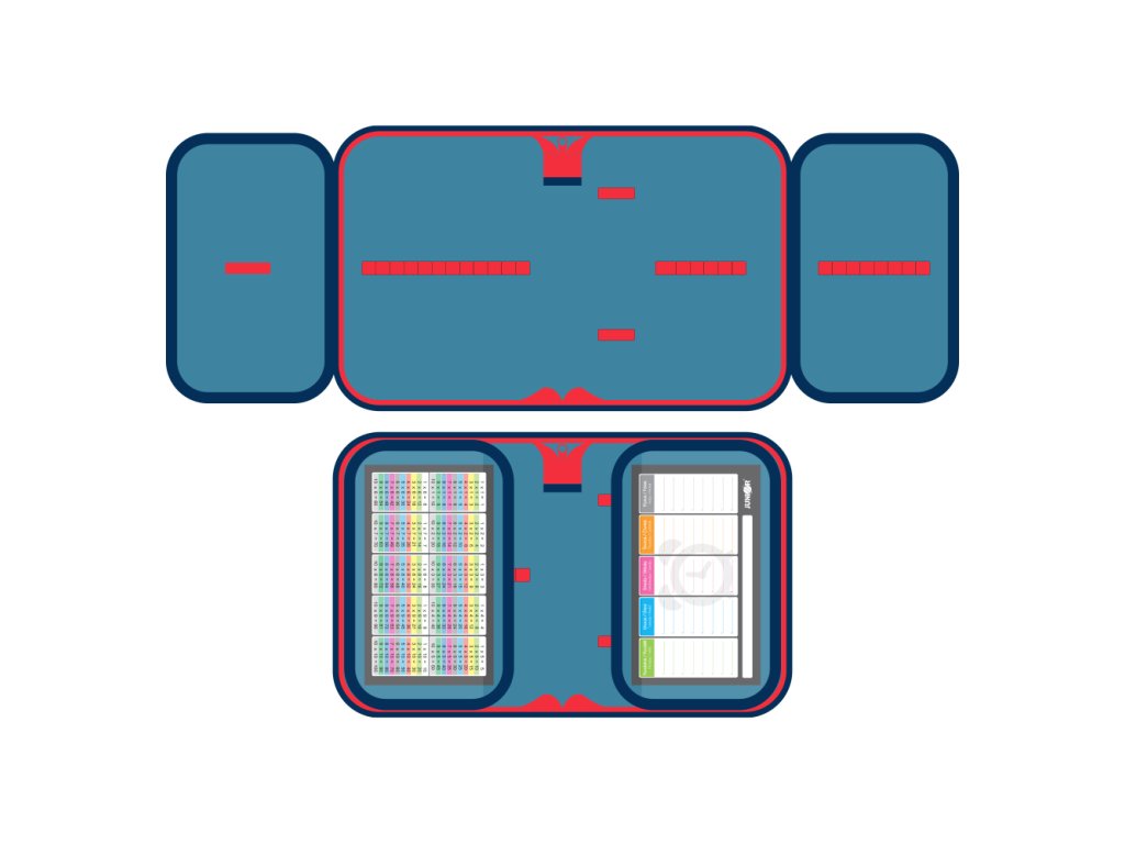 Prázdný, 1-patrový penál JUNIOR s rozvrhem hodin a malou násobilkou.