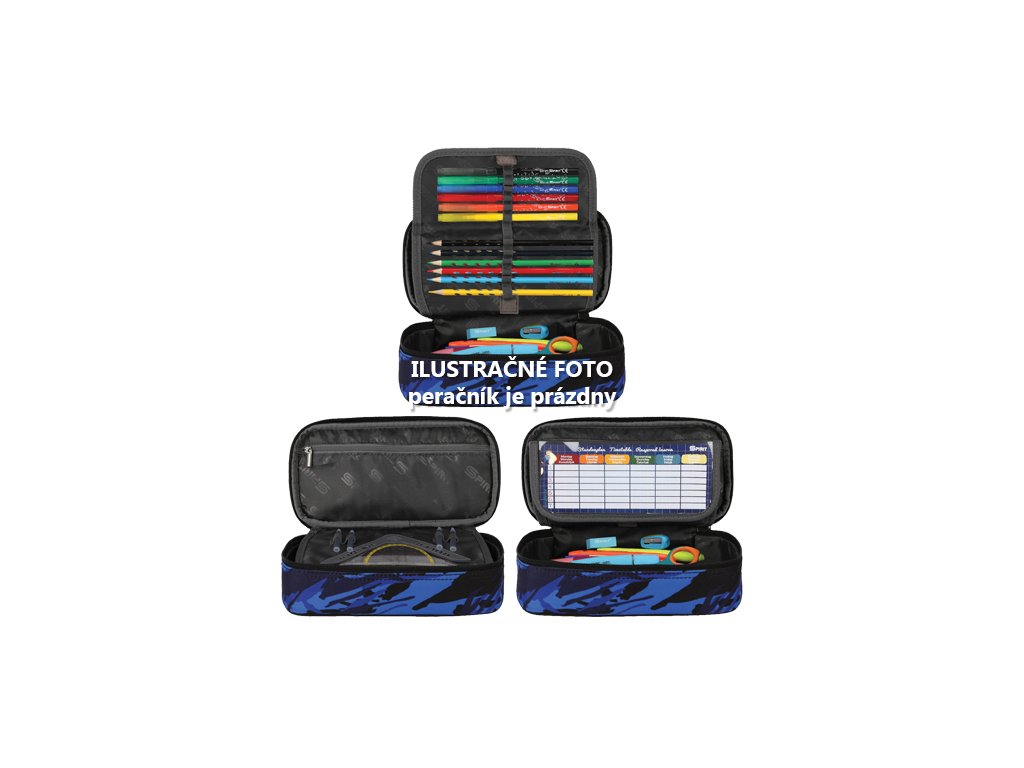 Penál: polyesterový materiál, 1 zip, elegantní design. Obsah vnitra na fotce je ilustrační. Vnitřek je prázdný.Doplňkové parametry
