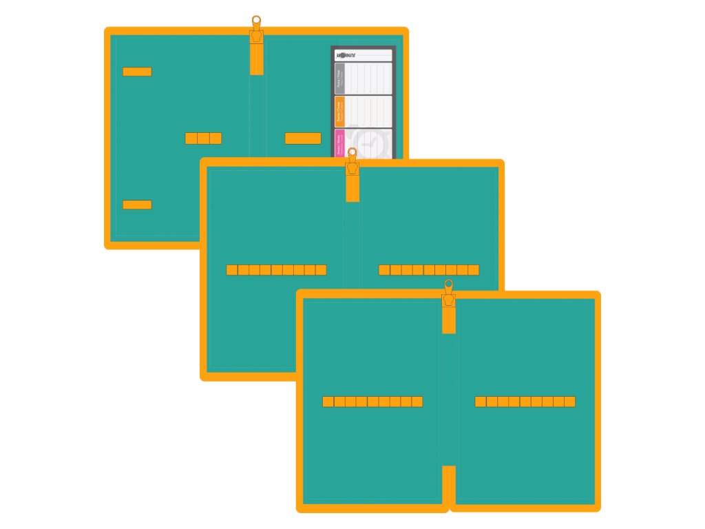 Prázdný, 3-patrový penál JUNIOR s rozvrhem hodin.