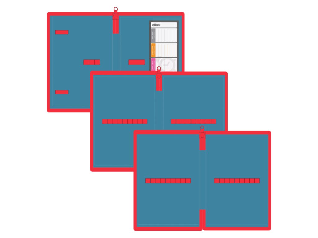 Prázdný, 3-patrový penál JUNIOR s rozvrhem hodin.