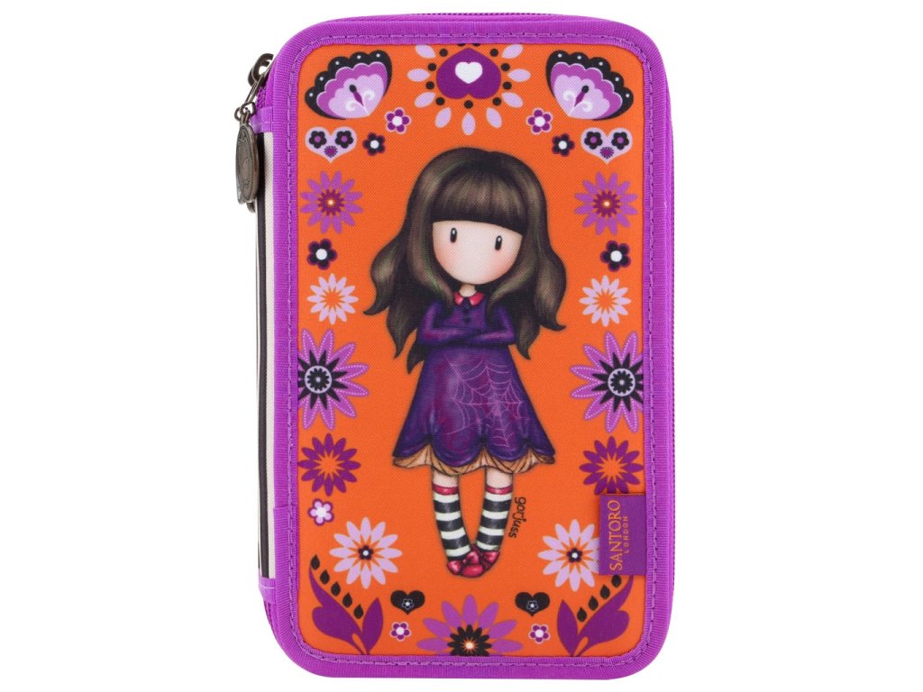 Penál je plně vybavený a zdobený panenkou Gorjuss. V prvním patře se nachází 18 ks fixů Santoro s úzkým hrotem. Druhé patro obsahuje 18 ks pastelek Santoro. Třetí patro je vybaveno grafitovou tužkou, třemi propiskami ( modrá, červená, černá), ořezávátkem, gumou, úhloměrem (10cm), pravoúhlým trojúhelníkem (13 cm) a malým pravítkem (15 cm). Penál svým vybavením poskytne vašim dětem vše, co budou ve škole potřebovat a svým vzhledem, zpříjemní chvíle při školních povinnostech. Podrobný popis: 3 plně vybavená patra vybavení: fixy, pastelky, tužka, propisky, guma, ořezávátko, pravítko, úhloměr, pravoúhlý trojúhelník uzavírání jednotlivých pater je na zip materiál: polyester rozměry: 20,5 x 12,5 x 7 cm Obchodní informace: výrobce: Santoro London kolekce: Gorjuss motiv: CobwebsDoplňkové parametry