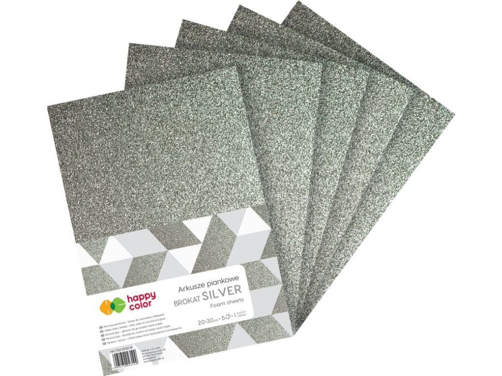Pěnové archy A4 5 ks brokátové stříbrné