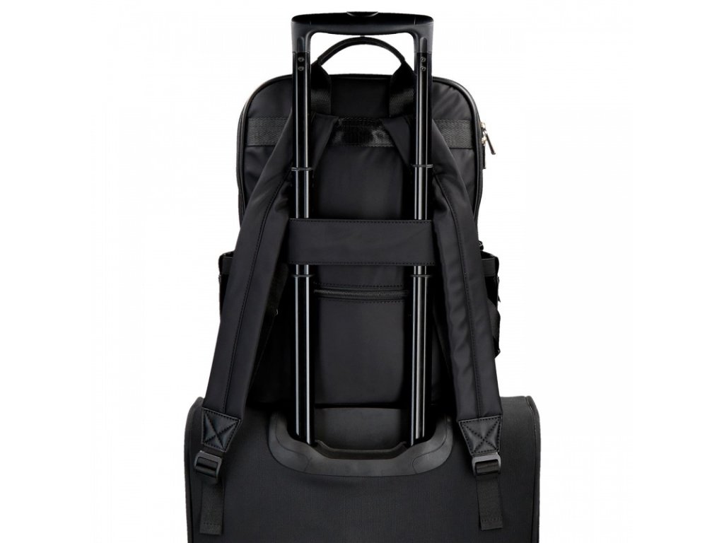 Široké, ergonomické a polstrované ramenní popruhy zajišťují pohodlí i při dlouhém nošení. Zadní panel je navržen tak, aby se batoh dal snadno připevnit k trolley kufru během cestování.