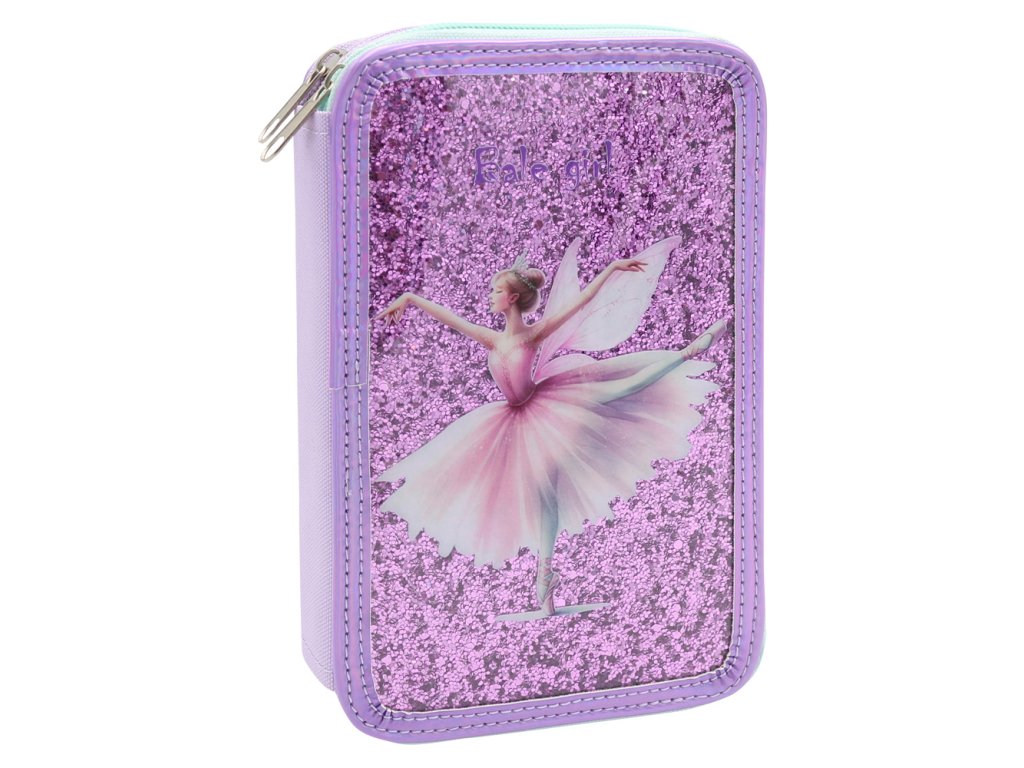 Fialové trblietky na vrchnej časti pod priehľadným PVC.