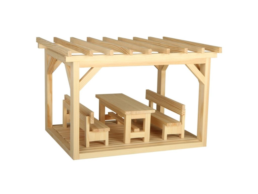 Pergola patří na zahradu jako střecha na dům. Slepte si ji v mini verzi a doplňte tak své dřevěné stavebnice o tuto krásnou zahradní stavbu. Ve stavebnicích CREATIVE KITS naleznete jednoduchý obrázkový návod se symboly jednotlivých úkonů, přesně zhotovené hranoly z borového dřeva o rozměru 9×9 mm v délkách od 16 do 230 mm, překližku tl.3 mm a papírový potisk. Jednotlivé díly se slepují lepidlem na dřevo a papír (není obsahem).Doplňkové parametry