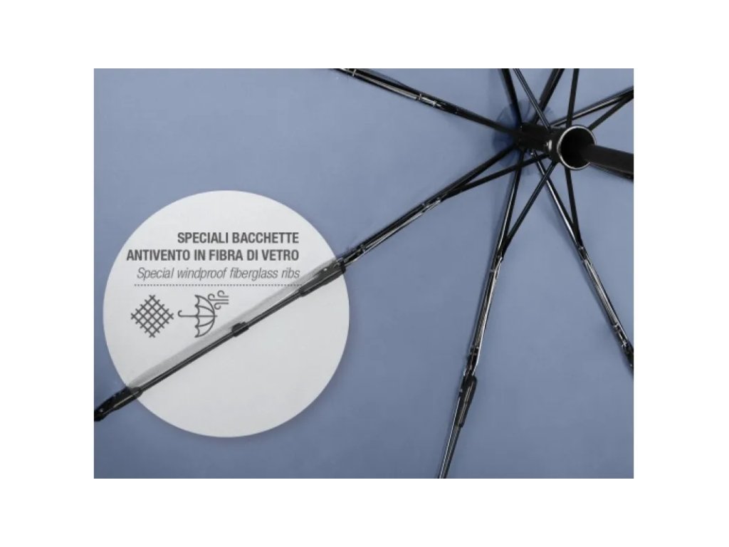 Moderní, stylový a nepřehlédnutelný deštník z dílny italského výrobce deštníků PERLETTI. Deštník má kvalitní, pružnou a větruodolnou konstrukci a automatické otevírání i zavírání. • průměr nataženého deštníku je 98cm, váha 362g • top kvalita, materiál: 100% polyester• větruodolná konstrukce ze sklolaminátového materiálu