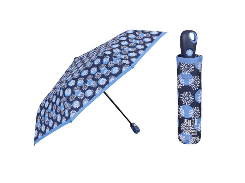 PERLETTI Dámský plnoautomatický deštník TECHNOLOGY Fiori/modrá, 21723